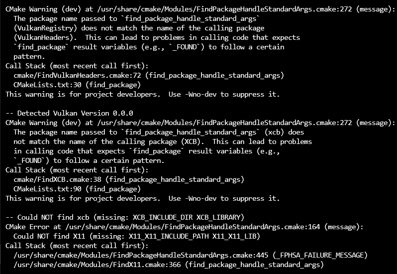 Desc: CMakeErrorAboutVulkanHeaderAndXCBAndX11Libraries.png
